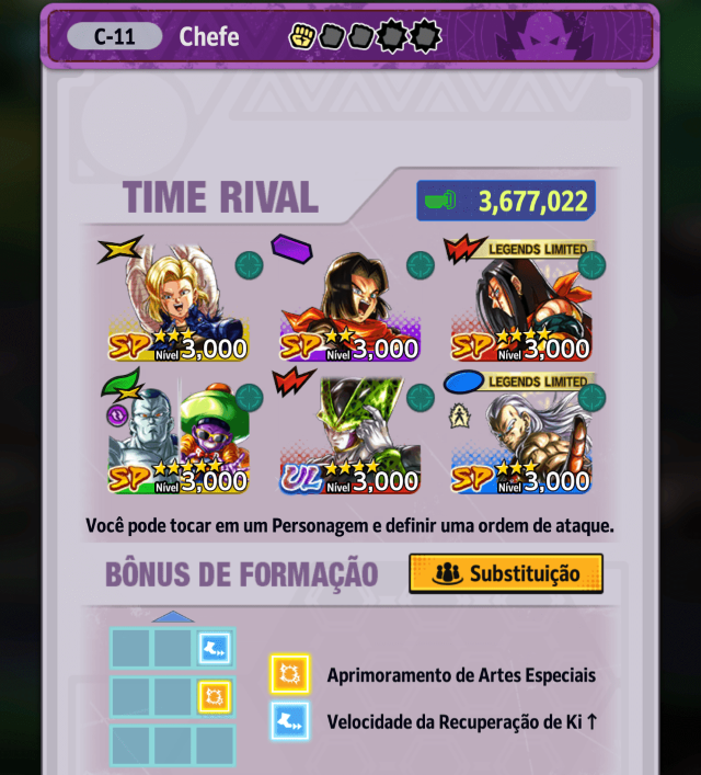 Se você quer verificar se sua formação da Equipe está funcionando bem, tente ir em "Reproduzir Batalha"
